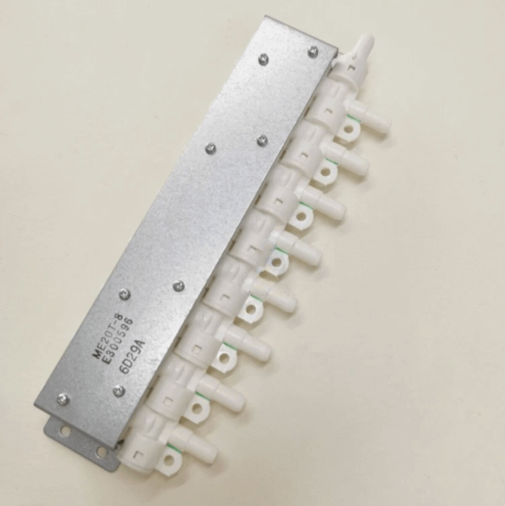This solenoid valve (2 Pos/8 Ports), part number E300596, is suitable for Mimaki UJV-160 printers.